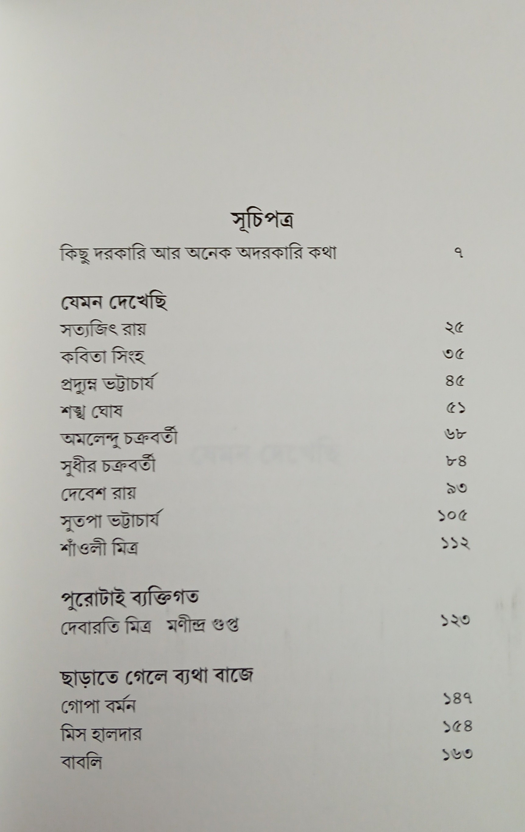 লেখাগুলো তৈরি হয়েছিল ব্যক্তিগত স্মৃতিকথার চলনে -- কখনো প্রয়াণলেখ, আবার কোনো স্মরণীয়ের শতবর্ষ অথবা প্রতিষ্ঠানের জন্মজয়ন্তী পালন, সাক্ষাৎকারের উত্তর সাজানোও হতে পারে রোমন্থনের কারণ। এমন কয়েকটি লেখা একত্র করলে ফুটে উঠতে পারে সময়-সমাজ-সংসারের একটা নির্দিষ্ট ঘের। তবে ব্যক্তিক আবেদন থেকে নৈর্ব্যক্তিকের পথ কাটা তো সহজ নয়! সুতরাং পুরোটাই ব্যক্তিগত। উদ্বৃত্ত যদি কিছু থাকে, তার অনেকটাই পাঠকের সৌজন্যে নির্ভর।